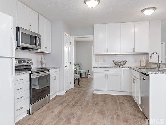 Prime Cary Location! Park Village Home with FENCED YARD, UPDATED spacious Kitchen with granite counter-tops and white cabinetry, 3 good size bedrooms and master with HUGE walk-in closet. Separate laundry room, and a deep garage. NO Carpet on main Level, updated flooring through most of home, fresh paint, NEWER HVAC, Hot Water Heater, Dishwasher, Microwave, Range and ROOF!!! Community POOL, Recreation Pond and Clubhouse and next to The Cary Greenway. CDC Guidelines Followed