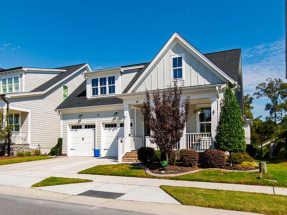 Welcome to a stunningly-crafted, farmhouse inspired rarity in the highly sought-after Wendell Falls community - 209 Tumbling River Drive. Brought to life by the esteemed Homes by Dickerson group and designed with the discerning buyer in mind, this one-level living home, in the form of the desirable Cooper floor plan, is the perfect choice for those seeking comfort, style, and practicality all in one. As you step inside, you'll be greeted by an open and thoughtfully designed layout, where vaulted ceilings with custom trim and beams create an immediate sense of warmth and architectural beauty. The spacious family room encapsulates the heart of the home - anchored in a cozy gas-log fireplace flanked by built-in bookshelves and accentuated by immaculate hardwood floors throughout. The gourmet kitchen is every chef's dream, boasting an abundance of cabinet space with soft-close doors, sleek stainless steel appliances, and a large, delicatus white granite island perfect for gatherings and meal prep. Whether hosting friends at a dinner party or enjoying your very own relaxing evening, the whole space seamlessly blends ease with elevated living, making every meal a delight. Nine-foot ceilings extend throughout the entirety of the home, including the luxurious primary suite and two other generously sized bedrooms, which feature brand-new luxury vinyl plank flooring for a fresh and modern touch. Stepping outside, the exterior is just as impressive as the interior. The property is nestled on a landscaped, tranquil, fenced lot, offering the perfect scene for those looking to soak in the breathtaking North Carolina sunrises and sunsets. Whether you choose to do so from the idyllic screened porch, or from the inviting patio at grass level, either allow the perfect backdrop for outdoor entertaining or quiet reflection. Through its youthful age, this home offers peace of mind with modern features that ensure energy efficiency and low-maintenance living. Other wins include a tankless water heater, an architectural shingle roof, and a sealed conditioned crawlspace, all playing their part in maintaining a comfortable environment year-round. Located just moments from a variety of amenities, this home provides convenient access to fantastic local restaurants, the community pool, scenic trails, and everyday essentials like Publix and Starbucks. With exciting developments on the horizon, Wendell Falls continues to grow as a vibrant, welcoming community. Experience the perfect blend of elegance, functionality, and location with 209 Tumbling River Drive.