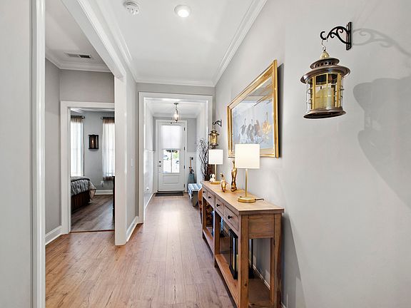 Cozy gas-log fireplaceCustom trim and beamsOne-level livingGourmet kitchenVaulted ceilingsNine-foot ceilingsLandscaped tranquil fenced lot