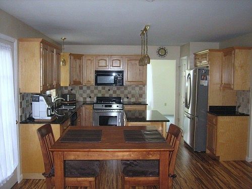 Super four bedroom Colonial with end of culdesac location and privacy galore from rear yard. From the front porch you will enter into a two story foyer with hardwood floors and coat closet. Foyer leads you to an open family room and kitchen area. Family room features a gas stone fireplace and bamboo hardwood running from family room through the entire kitchen area. The remodeled kitchen features granite countertops, maple cabinets, island and pantry. There is a also a formal dining room and living room. The second floor features 4 bedrooms, a large master bedroom with walk in closet, whirlpool tub in master bath, seperate shower and sitting area. This home is located in an area at the end of a culdesac which is mostly surrounded by woods and very private from rear patio. Other features include a full finished basement with hot & cold run into Utility Room for future bath and stairs from basement to inside the two car garage new hot water heater. Don't let your Buyer miss this great home!