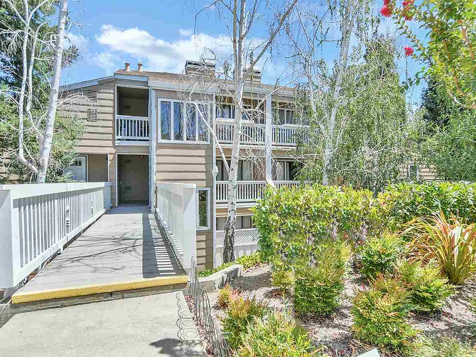 Great opportunity to own this lovely & charming one bedroom & one bath condo conveniently located in a desirable, peaceful & well maintained complex w/it's own stairways & no other unit above it. This bright & filled with natural light home offers inside laundry, wood burning fireplace in family room, dining area, good deal of cabinets in kitchen with large pantry, security system, oversize mirrored closet in bedroom w/ sliding door to balcony & front porch, carport w/ spacious storage cabinetry & abundant of guests/visitors parking spaces. Find pleasure in the privacy of the back balcony overlooking the open nature/lush green, creek and common area greenbelt. Beautiful BBQ areas surrounded by tall & mature trees create a pleasant atmosphere to enjoy family & friends while using the pool, spa and tennis courts. Situated just a short distance to multiple shopping centers, Walmart, Home Depot, restaurants, downtown and freeways. This home offers convenience and comfort all in one.