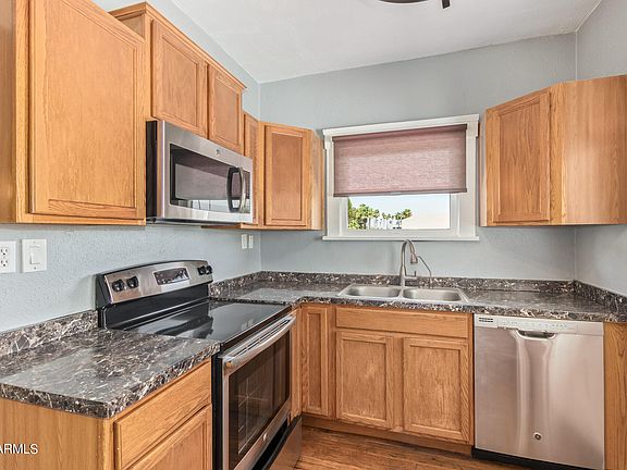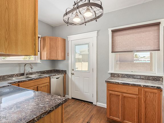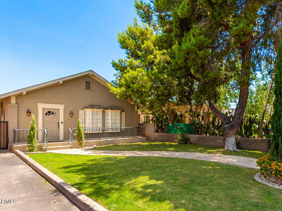 Cute historic home in Downtown Mesa with charming curb appeal. Take advantage of this opportunity to buy in the growing downtown Mesa area. Home sits just one block south of a light rail station. 2 Bedroom home boast beautiful wood floors and classic wood trim throughout. Kitchen includes newer light fixtures and stainless steel appliances. Refrigerator and washer/dryer included in sale. Nice green landscape in front and a block fenced back yard. Close to Arizona State University's Downtown Mesa Campus and Benedictine University. Close to all the new shops and restaurants on Main Street.