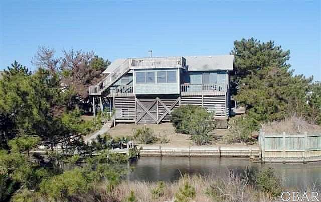 Canalfront Home in Nags Head! The lowest priced and best valued canalfront home in Old Nags Head Cove!...Perfect for 2nd home or primary residence!...16 X 10 south facing sun room (not included in sq. footage)! Roof top deck with great canal and soundviews!...Open Living room with vaulted ceilings and skylights!...2nd living area with 1/2 bath and wet bar plus an office on ground level!...Two separate garages!...On a quiet cul-de-sac!...Short boat ride to the sound!...Bulkheaded waterfront!...Great central location!...Sold ''as is'' (inspections welcome)..put on best buy list! CALL THE 24 HOUR INFORMATION LINE AT 1.800.369.5616 AND ENTER 256 FOR MORE FEATURES AND BENEFITS.