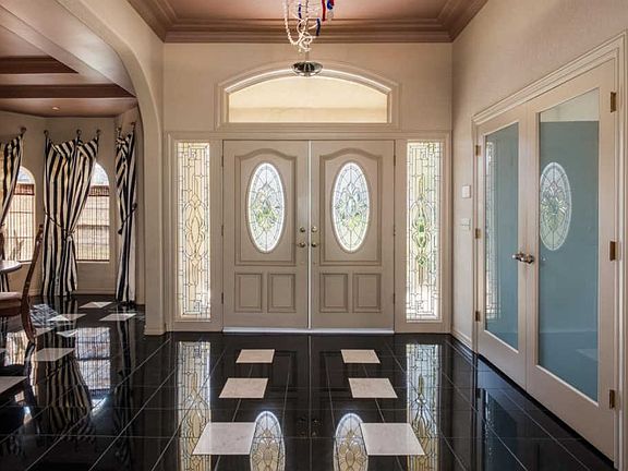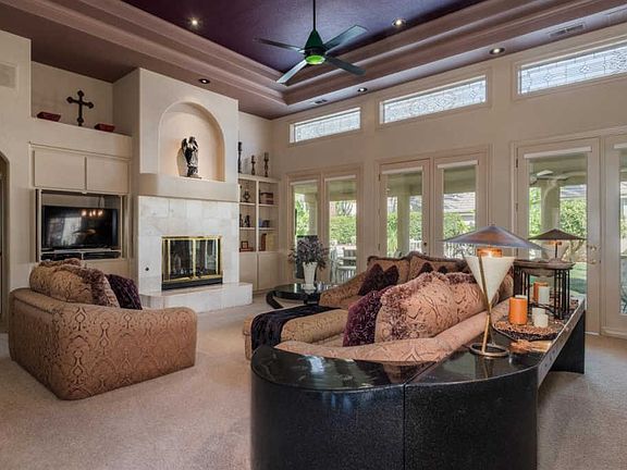 This unique custom home is filled with one-of-a-kind details and must see features by both Interior Designer Michael Weil and Robert Robo Landscape Design. From the bold entry of black and white granite, custom light fixtures, and built-ins, this home offers several distinctive touches. With a fireplace, steam shower, marble jacuzzi tub, surround sound, and custom built-in cabinetry the master bedroom is a sanctuary. Also included in the 5 bedrooms and 3 baths, is a versatile mother-in-law suite just off the kitchen. The great room is equipped with a wet bar, fireplace, stereo system and has an abundance of light from several windows and glass doors that lead to the covered patio. Beautifully landscaped, the backyard has lovely details, an inviting pool, safety fence, double-depth spa, 3 Canary Island Date Palms, an outside stereo and 36 LED lights which make it an attractive retreat day or night. Please call and schedule your private showing today.