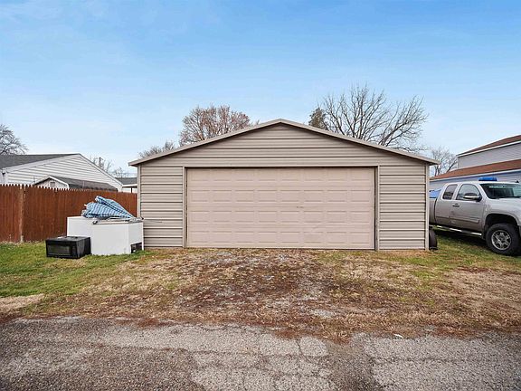 Charming, move-in ready home with split bedroom floor plan, private feeling back yard, accessibility ramp & detached 2 vehicle garage, close to the heart of downtown Syracuse! Located within easy walking distance to downtown restaurants & shops as well as Syracuse Lake Public Access, this 3 bedroom, 2 full bath home would make a great investment property, rental, lake escape or year round living as it is close to schools & minutes from local amenities including both Syracuse & Hoys Beach. Classic exterior with vinyl siding, shutters that pop & a cement ramp leading up to the front door with beveled glass inset. Inside the front door you’ll find a warm & colorful atmosphere with wood flooring & bright walls. Generous living room gets plenty of natural light from big picture windows & is open to large kitchen/dining area. Kitchen has everything you need with abundant cabinetry & breakfast bar perfect for quick bites separating formal dining zone in front of big windows. Sizable laundry off kitchen has window & built in shelving. Welcoming primary bedroom has en suite bath with long vanity with lots of counter space & tub/shower combo. Remaining 2 bedrooms are on the opposite end of the house in their own hallway & are good sized with ample storage throughout (all bedrooms are carpeted for extra coziness). Main shared bath also has tub/shower combo & skylight to help brighten up the mornings. Back yard is enclosed by wire fence yet feels even more private as it is surrounded by neighboring 6’ solid wood fences with the detached garage blocking the alley view. Free standing shed will keep all your tools & toys handy in addition to garage. Ready for a cup of coffee? Syracuse Cafe is a 6 minute walk & close to Down Under, Kelly Jae’s Lakeside & the public library. Are you ready to start out the new year from a new location or property on your roster? Don’t let this one slip away—reach out today!
