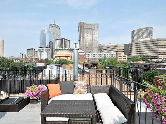 Two bedroom penthouse has TWO decks and great views! Modern kitchen with granite countersand gas cooking opens to sunny living space with bay window, hardwood floorsand fireplace. Full staircase to large private roof deck with sweeping city views. Both bedrooms have access to additional rear deck. Pets OK. W/D in unit. Great location near Southwest Corridor Park.