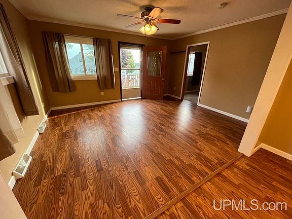 Looking for a move in ready and convenient place to live in Munising? Look no further than this charming 4 bed home within walking distance to shopping and restaurants in downtown Munising. Freshly painted and newer carpet. 2 bedrooms on the main floor with one offering laundry hook up and access to full walk-out basement. 2 bedrooms on the upper level. Water heater and heating system installed 2022.