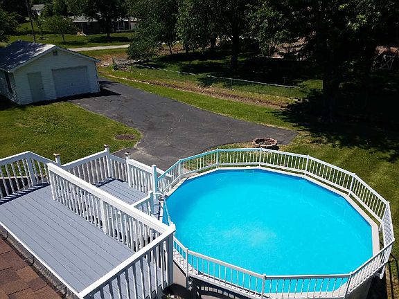 Five bedroom (two non-conforming), 2 bath walkout with pool and large, lot lined in mature trees. Three garages - two attached and 1 detached shop. Pool with fully enclosed deck. Firepit and two paved driveways. Two living areas. Den with dry bar. Beautifully decorated and remodeled within last five years. Nearly an acre of land but in town and close to schools in safe neighborhood. square footage and lot size to be verified by buyer. Call now for showings. No rent-to-own or seller-financing. Bring your offers.