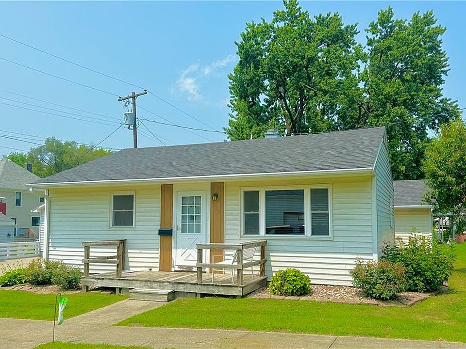 Adorable 2 bed with everything on one level! New roof 2024, newer furnace, windows and siding. Nice detached garage and ramp in place for wheel chair access into house. Interior offers newer flooring, nice walk in shower in bath and an eat at bar in kitchen.