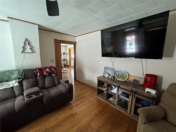 Check out this charming four-bedroom home nestled near the center of Afton! It is just a block away from the town square which includes the park and local small-town businesses that are thriving! Notice the hard wood and tile flooring throughout the entire home and renovated bathroom with a walk-in tile shower! Large wraparound, partially covered deck which would be great for entertainment for guests during the warm months! Two car detached garage for private parking located in the alley, call your agent today for your showing!