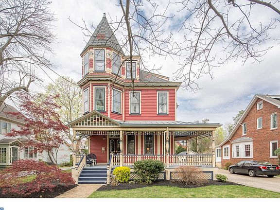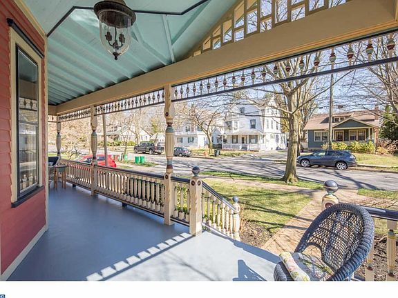 This beautiful home is a matriarch of Haddonfield's history and clearly a product of the eclectic and imaginative Queen Anne period. Built in 1895, the exterior features a multi-level turret, copper gutters, standing-seam metal roof accents over a wrap-around porch, all decorated in as many as ten different complementary paint colors. The varied gables and dormers reaching three finished floors feature architecture shingle with floral accents. As you enter the walnut French doors, it becomes obvious what is the true treasure of this property. While all that makes it a historic masterpiece remains, great care was taken to update and improve it well into this century. Two zone heating (steam and forced air), and air conditioning manage the comfort and enjoy first floor washer and dryer facilities. The updated kitchen features a Sub Zero refrigerator/freezer and granite island with open flow to dining room and transition to a back family room separated by large glass French doors. The parlor and front sitting room feature original inlaid wood flooring, large clear-paned windows, and nearly ten foot ceiling heights. The front room is sun-lit by a large bay open to the front porch. Crown molding with dentil and pearl accents highlight these rooms. The family room features built-in entertainment center and high-end storage cabinetry along with a gas fireplace accented by marble surround and wood mantel. A large screened porch allows for enjoyment of the seasons and views of the landscaped yard and lovely neighboring natural boundaries. Up the back staircase, there's a full bath featuring a clawfoot tub and a repurposed antique dresser as vanity. Through the master bedroom, the master bath shines with honeycomb marble floors and marble tile shower surround. The master bedroom and one other bedroom feature large built-in antique dressing closets. An additional room serves as a personal gym. Large closets are a welcome discovery on the second floor. The Bonus room on the second floor, located within the turret of the home, is graced by three large windows within the bay of the turret. This room is replicated on the third floor in another beautifully sunlit room, which currently serves as a sitting room to the fourth bedroom. Other bonuses-central station security alarm, six zone landscape irrigation system, 58-fixture outdoor lighting system, and a new roof with CertainTeed Shingles with a 50 yr manufacturer's warranty. Come visit. You'll want to stay forever!