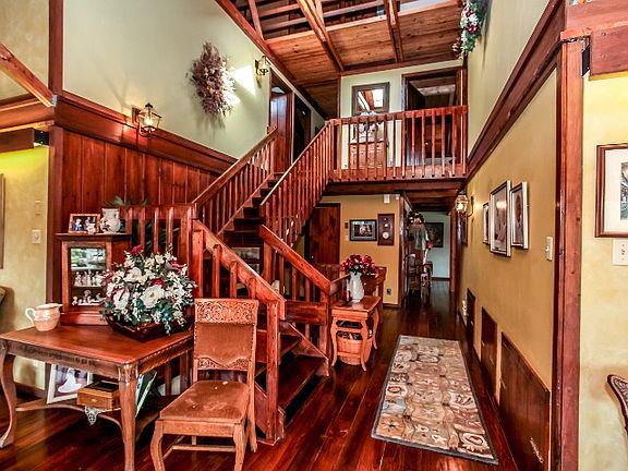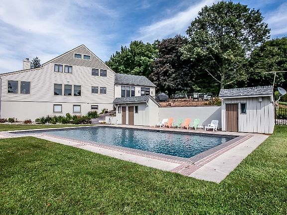 Privacy, Pond, Pool, Patio and so much more. This property is truly a private oasis for the discriminating buyer. The current owners have lovingly maintained this property for many years and their pride of ownership shows. Main house is situated on 7.7 acres with long driveway with separate detached 3 car garage with space above to possibly create an apartment, in-law area or caretakers quarters. Adjacent to main home is an in-ground gunite sports pool with changing and lounge areas, as well as a large patio for entertaining. From the main home and pool, one can can see great views of your private pond, small stream and spring house. Property also features a large open field area for someone interested in raising animals. Main home features 5 BR/2.5 BA, wonderful hardwood flooring throughout, exposed beams, vaulted ceilings, farmhouse doors, circular wood burning fireplace, zoned HVAC, central vac, hardy plank siding, 40 yr roof and much more. Gourmet kitchen features granite countertops, cherry cabinets, Dacor double oven, 5 burner Thermador Cooktop, pantry and center island. Oversized family room with gas fireplace and built-in speakers is the perfect place to relax or entertain. This home truly must be seen to be appreciated.