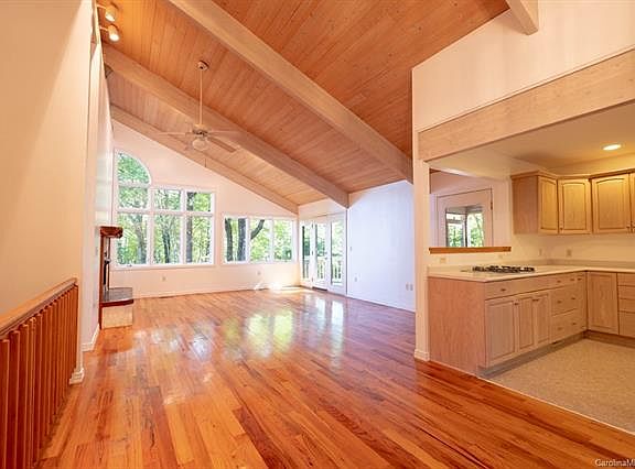 This is a private home with tons of potential in an established lake community and only 5 miles to Brevard. With 2 lots included in the sale, over 6 acres give you privacy and total control of your long range views. This two bedroom 2.5 bath Deck House has an open floor plan and great natural light. The master bedroom is on the main floor and the spacious downstairs bedroom suite can easily be converted into 2 bedrooms or a guest suite with an independent access. The house was originally permitted for 3 bedrooms. The beautiful hardwoods in the living room and new carpet throughout make this house move in ready. Just add your personal touch. With long range views from the master, the living room and the deck, you are connected to nature from everywhere in this home. The walk down to the lake is less than a mile and there is a community pavilion where neighbors meet for weekly functions in the summer. Take a look at the listing video for an additional perspective.