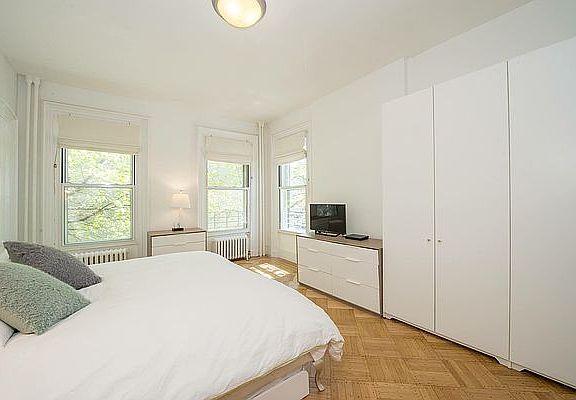 Imagine...Saturday morning, stepping down the stoop of your Brownstone, walking across the street for a fab coffee, nibbling a buttery pastry as you peruse the berries and blossoms at the farmers market right on the corner of your street... A wonderful location on sycamore tree-lined Washington Park corner of DeKalb Avenue. This is a 2nd floor with extra high ceilings framed out with crown moldings, beautiful East and West exposure, Ft Greene park can be seen from your living room windows, farmers market all year round right on the corner, BAM and Mark Morris Dance Centre are a 5 min walk away, Target a 10 min walk. All the express trains 8 min walk, C and G trains 2 min walk. This is one of the most beautiful apartments you will see. View it today! Situated in a prime Fort Greene location directly opposite the entrance to Fort Greene park, this 2 bedroom apartment is bright and spacious with high ceilings and abundant light. Two bedrooms master with king sized bed, second bedroom with oeuf bunk bed. The apartment boasts abundant closet space, a washer/dryer in bathroom, original claw foot tub, and 1890's restored parquet floors.