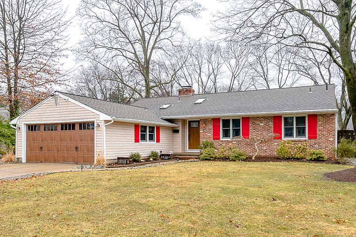 You could wait a long time and never find a better Barclay rancher than this expanded Cambridge! This wonderfully remodeled home is packed with designer elements & loads of style! You will be pleasantly surprised by the all the open space and its exciting floorplan! Hardwood floors meet you in the foyer area, and continue down the main hallway and through all the bedrooms. The remodeled and redesigned eat-in kitchen is gorgeous and offers ceramic tile flooring, a skylight for added sunlight, recessed lighting, stainless steel appliances, corian countertop, and modern-style oak cabinetry. Entertaining and everyday living with family and friends is fun & easy since this area is open to both the dining & living rooms. The living room is spacious and enjoys the charm & warmth of an exposed brick wall corner gas fireplace shared with the dining room area. You will absolutely adore the large great room addition, with its cathedral ceiling, hardwood floors, bay window and 2 sliding glass doors which conveniently lead you right out onto a large Trex deck. The 3 bedrooms, including the master suite, all feature lovely hardwood flooring and good closet space. The master bath and main bath were both beautifully redone. The 2 car garage was reconfigured into a large finished bonus room with carpeting, currently used as a play/music room, and a storage space large enough for all your yard tools, bikes, recycling etc. Converting the space back to a 2 car garage could be easily accomplished. Don't wait too long – homes like this will not last long in the spring market!