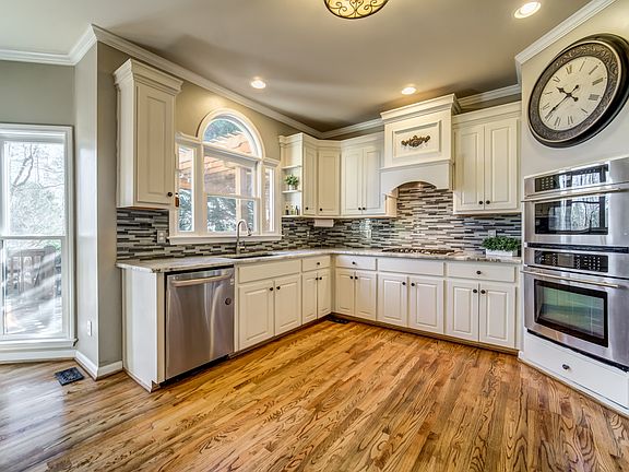 Traditional brick front home features a custom gunite pool/hot tub, four car garage, multi level deck and finished basement with theater room, wet bar, bedroom and full bath. Main level has newly refinished hardwood floors, updated eat in kitchen with custom island including wine cooler, beautiful dark wood office, guest suite with full bath, coffered ceilings, and two story great room with fireplace! You will not find more home for your money!!!