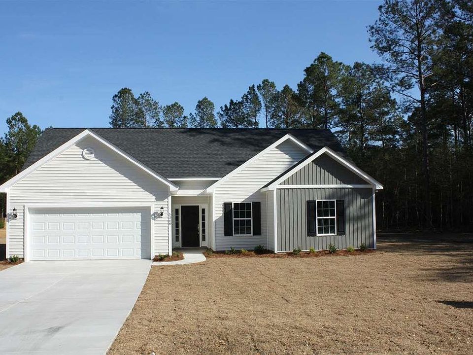 Come see this new construction 3 Bedroom, 2 Bath home in the popular "River Country" development. White shaker cabinets in kitchen & baths, gray exterior, interior walls light gray, carpet in bedrooms, laminate or tile in living area, kitchen, & baths. 10x10 patio in the rear. This neighborhood offers a country setting close to the Waccamaw River and major Hwys. 33 & 22, which will give you great access to the North and South Strand areas. "River Country" features a pool and clubhouse, playground and a gated boat/RV storage yard. This home is located in an area that qualifies for "0 down". Photos currently are the floorplan previously built and house specs will not be exactly the same. Used for visual representation as house is currently in framing stage.