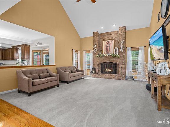 Welcome to your dream home! This exquisite brick-faced 2-story residence boasts an array of features that cater to both comfort and luxury living. Tucked away in a wooded neighborhood, this home offers tranquility while being close to numerous restaurants, shopping, and entertainment options. Inside, stunning hardwood floors grace the entrance, including the spacious living room with cathedral ceilings and the separate formal dining room adorned with beamed ceilings. Adjacent to the dining room, you'll find an office, powder room, and additional living space for added flexibility. Cozy up by the floor-to-ceiling brick fireplace or indulge your culinary passions in the large, open concept kitchen equipped with stainless steel appliances and gorgeous granite countertops. Retreat to one of the four bedrooms (with the possibility of TWO more in the basement!) and unwind in the primary suite featuring two walk-in closets, one equipped with its own washer and dryer for added convenience. With 3 and a half bathrooms, there's no shortage of comfort and convenience. The basement offers additional entertainment space with a large gated playroom and a separate living area complete with a dry bar. Park with ease in the 3-car garage, which includes an EV charger. Have peace of mind for years to come with recent major updates including a BRAND NEW ROOF installed in 2023, along with a BRAND NEW water heater and a 2-3 year-old central A/C system. Step outside to the stunning custom stone patio that boasts a wood-fired grill valued at $70,000! Enjoy the privacy of the fenced-in backyard surrounded by beautiful mature trees. The carpet was just professionally cleaned, ensuring a fresh and inviting atmosphere. Don't miss out on the opportunity to call this remarkable property your home. Schedule a viewing today and experience luxury living at its finest! This one won't last long!