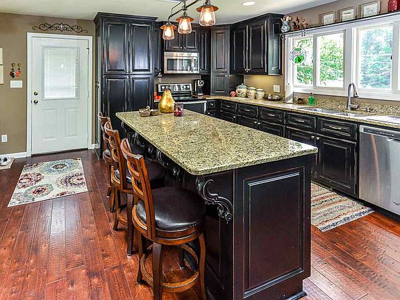 - KITCHEN DESC: Eat In Kitchen, Granite Countertop, Wood Floor, Kitchen Island, Skylight, Recessed Lighting