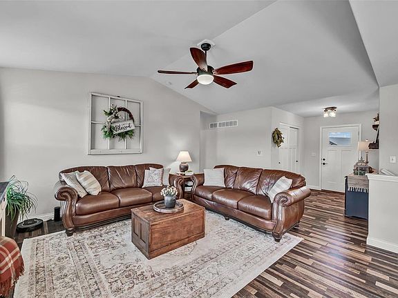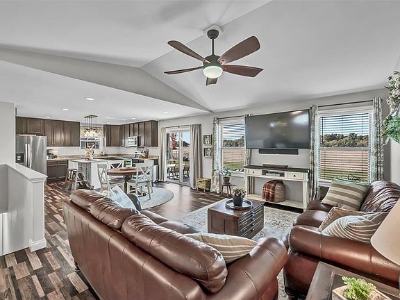 BETTER THAN NEW! This gorgeous ranch is only 2 years old & is loaded with custom finishes. Easy care wood luxury vinyl plank flooring throughout most of the main level. The soaring vaulted ceilings in the living room welcome you into the coveted open floor plan! The immaculate kitchen features center island breakfast bar, granite countertops & stainless steel appliances. You'll love the custom finishes & beautiful upgraded light fixtures. The kitchen flows into the dining area & living room for seamless transitions. Step out the sliding glass door to an oversized patio that overlooks a tranquil field, which makes it an ideal spot to entertain family & friends. The primary bedroom suite boasts vaulted ceilings, large walk in closet & luxurious primary bathroom with dual sinks! Two additional bedrooms with ceiling fans & bathroom round out the main level. Convenient main floor laundry. Oversized 3 car garage. The lower level is waiting to be finished to suit your needs. See it today!
