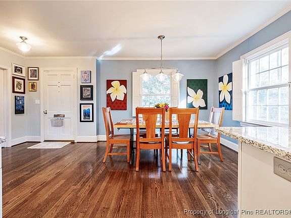 A charming home in Haymount, NC! This 3-bedroom, 1.5-bathroom property boasts hardwood oak flooring throughout. Kitchen has been elegantly updated-SS Appliances, granite countertops. Entertaining with ease - the wet bar area complete with a wine rack and kegerator make it easy. Full bath has been beautifully updated to include hexagon tile flooring, beveled white subway tile walls, large shower, and a concrete slanted sink providing a fresh, contemporary feel. A convenient half bath off of the kitchen adds to the home's appeal. The property also features a heated and cooled detached garage, offering additional space for a workshop, storage, or recreation. Enjoy the tranquility of your own fenced private backyard, which provides a great space for outdoor activities, gardening in the raised garden beds, or simply unwinding after a long day on the covered front porch or covered patio. Located close to shops, dining, and schools, this home provides character, comfort and convenience.