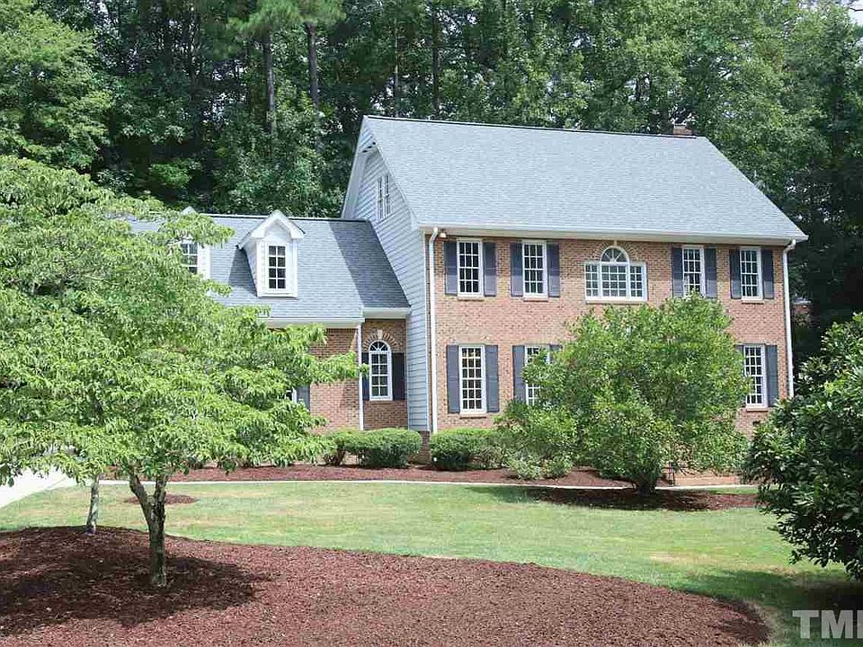 Beautiful 4 Bedroom 3 full bath home on nearly 2 acre lot. Brick front and nestled on quiet cul de sac. Formal dining room & living room/study. Open concept island kitchen with stainless steel appliances, dbl oven, granite, brkfast area and large family room w/gas log fireplace. 1st floor bedroom, full bath. Hardwoods on 1st floor. Lots of natural light. 2nd floor laundry room. Upstairs master w/luxury bath. Rear access to bonus room. Walk-up attic. Mature landscaping. Low Garden Club fees. Home warranty!
