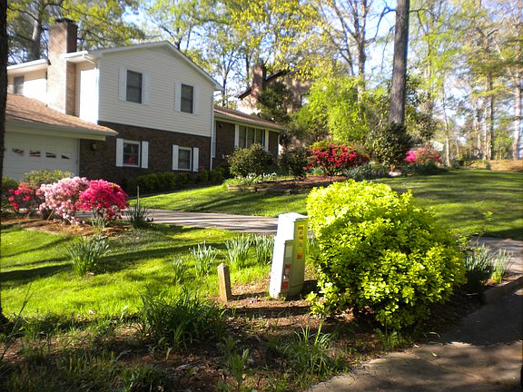 4 bedroom 3 bath 2100 sq-ft tri-level home on quiet cul-de-sac in Woodleigh subdivision South Gastonia. Park like setting with great views from every room. Large family rm with brick fireplace lower level. One bedroom and adjacent bathroom also lower level. Entry, Living rm, Kitchen, and Dining rm on mid level. Three bedrooms two bathrooms upper level. Large attached double garage partially finished. Recent roof, 95% efficient gas furnace, mid / lower zone air conditioner. Very well insulated and economical to heat and cool. 65’ x 12’ storage building in good condition with metal roof. Large recently built 24’x 16’deck off kitchen with great view of gorgeous open back yard and woods beyond. All on .64 acres with a small wooded grove between house and storage building. Within walking distance to Gaston Day School.
