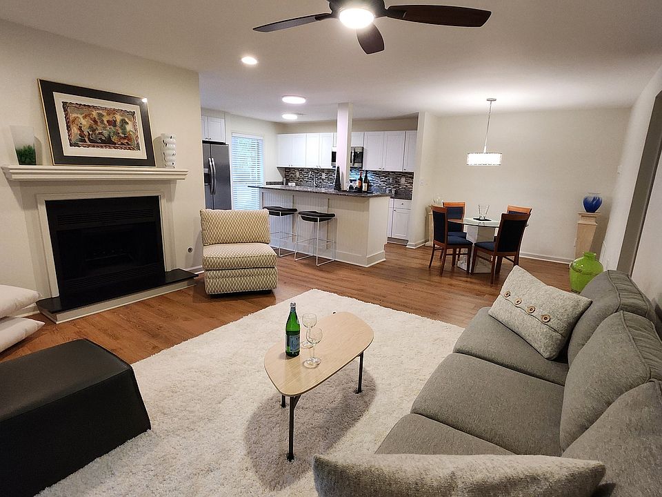 Don't miss this beautifully updated condo featuring an open concept plan with the kitchen totally open to the living and dining spaces! The kitchen features granite countertops, mosaic backsplash, and stainless-steel appliances! The newly updated bath features a new vanity with granite countertop, double bowl stainless-steel sink with disposal and pullout faucet, porcelain floor and wall tile! The rooms are spacious and have been freshly painted in a neutral palate! Smooth finished ceilings throughout! LVP flooring! Beautiful light fixtures and fans all feature LED lighting and dimmers throughout! Laundry room comes with LG front load washer and dryer with storage pedestals! Don't miss the huge screen porch that has been freshly painted to match the interior color palate and carpeted with carpet tiles and lit with LED Edison style string lights to create a warm glow for entertaining or just relaxing and enjoying the wooded views!