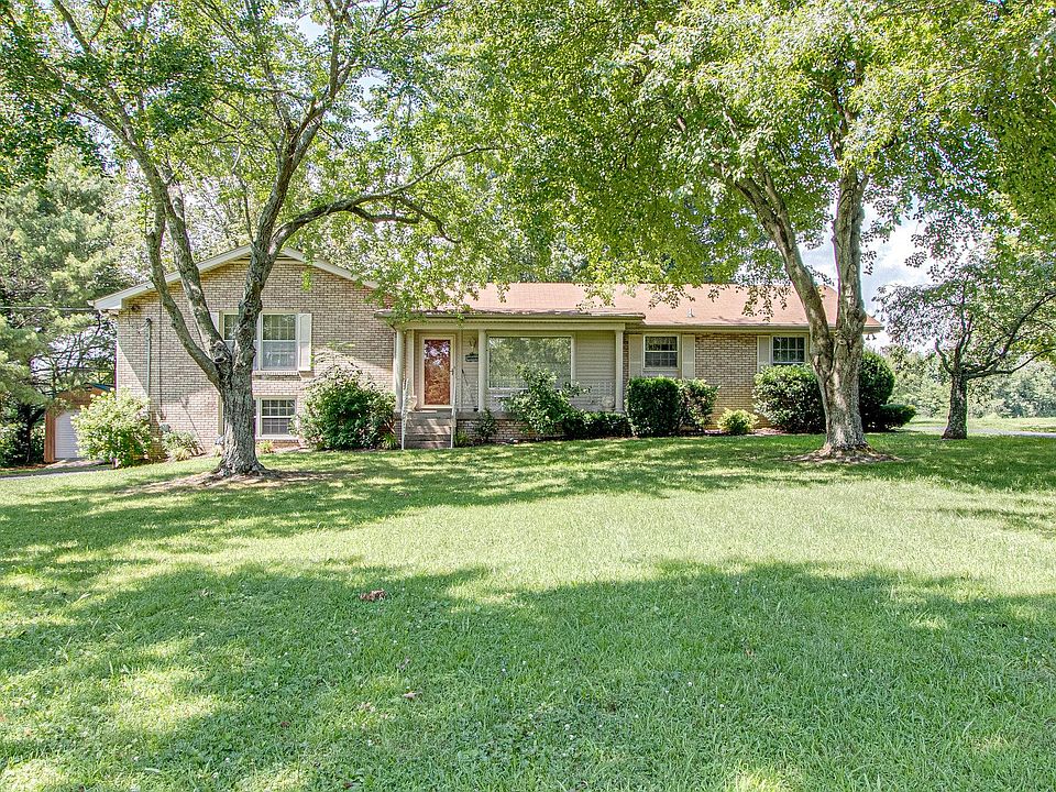 All brick, split level has large living room has gorgeous brick fireplace with gas logs. Large bedrooms. 2 car basement garage. 2 car detached carport. Lots of storage. 1.35 acre lot backs up to a field . Porch on front and back. Long asphalt driveway circles home. Basement could be converted to even more living space. Located approx 6 miles from Interstate 40. Enjoy country living close to town. Less than 35 miles from east Nashville, Gallatin or Murfreesboro.