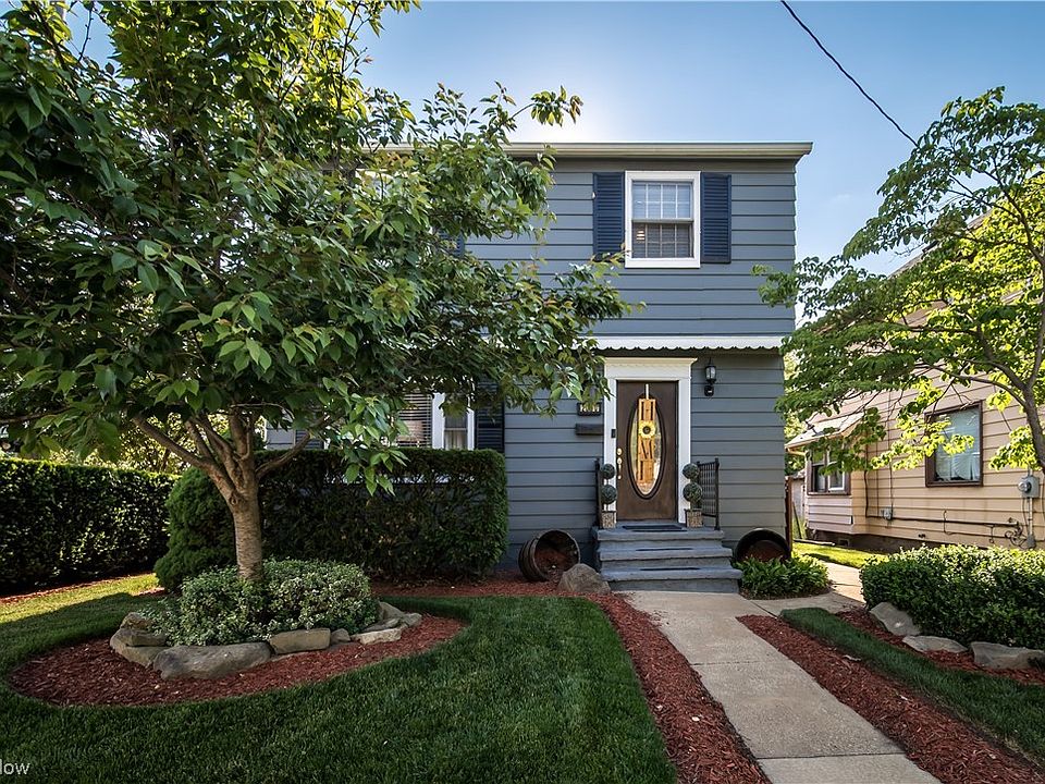 This Kenmore cutie is up for grabs and won't be here long! Meticulously maintained with only two owners, it's oozing curb appeal with its picturesque walkway and ornamental trees. Up the front step and right inside you'll find a cozy living room. This comfortable layout is complete with a wood burning fireplace and hardwood floors that run throughout most of the home. Large windows in every room keep things bright and airy. There's a full dining room and a well sized kitchen. The kitchen cabinet doors and backsplash offer some gorgeous details and the cage pendant lights offer a fun upgrade, plus ample cabinet and prep space. There's a den in the back of the home for added space to spread out and a convenient half bath. Upstairs are three well sized bedrooms, all hardwood floors, and a shared hallway bath. Full basement for great storage space and your laundry area. Outside you'll find the absolute cutest backyard, you'll be seriously obsessed. Fully fenced, with tall hedges, it feels
