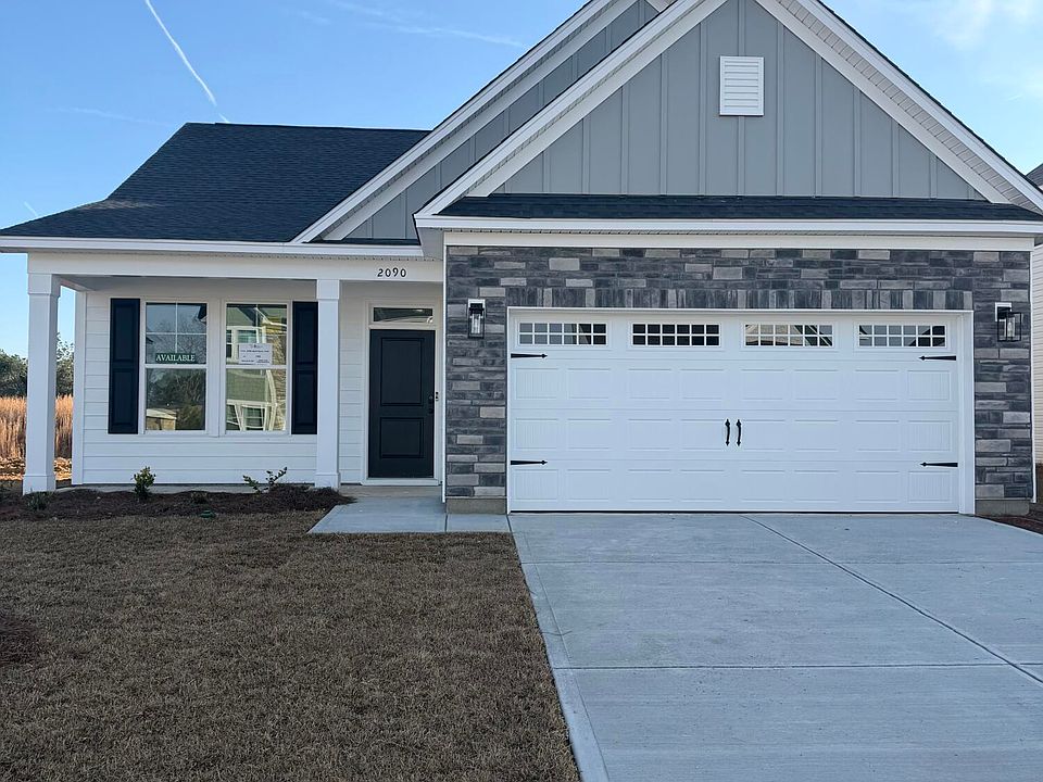 You asked we listened! One of the most common requests in Camellia Park is a floor plan with the primary suite on the main level, and we're excited to introduce The Buck Island II, the perfect blend of ranch and two-story living. Upon entry, you're welcomed by a spacious foyer and a dedicated dining room. The open-concept kitchen features a large quartz island, Bluetooth sound system, and stainless steel appliances, flowing seamlessly into a large family room with access to a covered patio, perfect for indoor/outdoor entertaining. Just off the garage entry, you'll find a powder room and a large laundry room for added convenience. The main-level owner's suite overlooks the backyard and includes a spa-like en suite bath with double quartz vanities, a walk-in shower, garden tub, and an expansive walk-in closet. Upstairs offers two generously sized bedrooms that share a full bath with double sinks, ideal for guests or family. The charming exterior features navy blue accents and stacked stone, adding to this home's standout curb appeal. Stop by for a private showing, our site team is on-site daily! Ask us about our exclusive financing incentives that could get you into this home for less than you think!