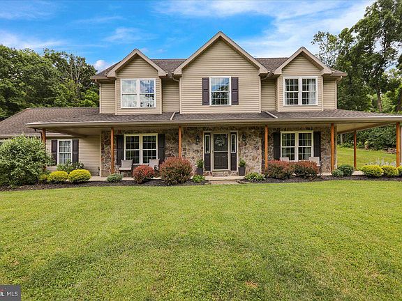 Welcome to your dream retreat! Nestled on 3.67 acres in the highly sought-after Exeter Township School District, this charming and spacious home offers the perfect blend of comfort and homey style. Tucked far off the road, you'll enjoy privacy and serenity. Step onto the inviting wrap-around porch, the ideal spot to relax and take in the scenic surroundings. Inside, you'll find a bright and cheery eat-in kitchen featuring stainless steel appliances, an island, and direct access to a stunning patio where you can entertain or simply enjoy peaceful views of your expansive property. You'll love the cozy family room with rustic touches, including a wood-burning fireplace ready to convert to a wood stove. Also a formal dining area for hosting special occasions. Throughout the home, wide plank flooring and wood details add warmth and character. A large laundry/mudroom with outdoor access ensures practical convenience. This home boasts 4 generously sized bedrooms, 2.5 beautifully updated bathrooms, and plenty of natural light throughout. The primary suite is a true retreat, with a bay window, a large walk-in closet, and a spa-like en suite complete with a Jacuzzi tub. Add railings to complete the private balcony right off the primary bedroom. Full unfinished basement with roughed in plumbing. Plenty of storage. Walk out with Bilco door. Wired for a generator. Outside, the gorgeous landscape awaits the Spring when the beautiful perennial garden blooms will reveal themselves. The two-car attached garage offers ample storage and parking. Whether you’re enjoying the tranquil acreage, relaxing on the porch, or making memories inside, this home is the perfect place to call your own. Don't miss the chance to make it yours! *1 year home warranty offered by the Seller with an acceptable agreement of sale.