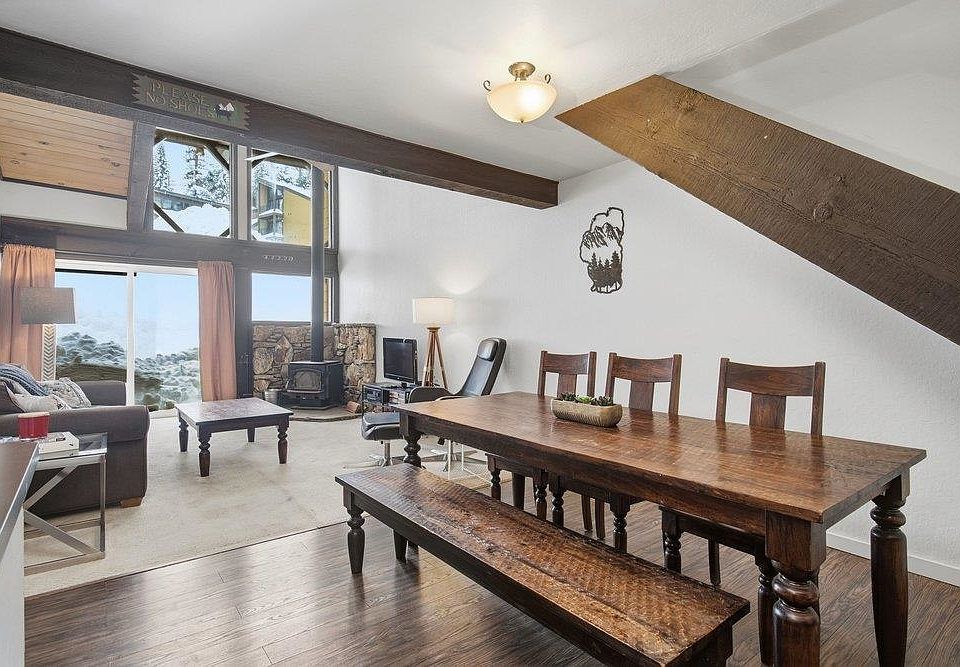 Exceptional mountain top retreat, 2 bedroom, 2 bathroom condominium offering a perfect blend of rustic tranquility and modern mountain living. Contemporary architectural style, featuring vaulted ceilings with large picture windows that capture the outdoor views and abundant natural light. The open-concept living, dining, and kitchen area is the heart of the home, complimented by a woodstove with stone hearth in the corner. Two spacious bedrooms provide comfortable accommodations and separation. The primary suite includes a private en-suite bathroom and walk-in closet. Stacking washer and dryer in the unit and an attached 1-car garage for parking and storage. The setting provides a true escape, offering year-round recreational opportunities: Winter: Direct access to world-class skiing and snowboarding, as well as nearby snowshoeing and cross-country trails. The property is ideally situated just minutes from the chairlifts of Alpine Meadows and Palisades Tahoe ski areas, providing unparalleled accessibility for winter sports enthusiasts. Summer/Fall: Surrounded by hiking and biking trails, with crystal-clear streams and alpine lakes just a short distance away. Alpine Springs Park offers tennis courts, a sports field and a swimming pond. This condo is perfect for a small family, a pair of couples, or an individual seeking a high-quality mountain retreat with exceptional convenience to outdoor recreation.