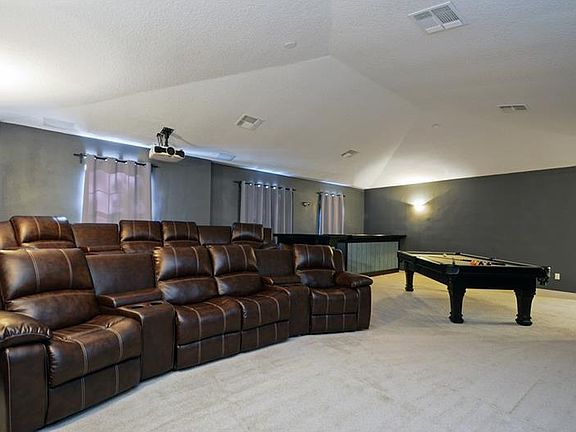 Theater Room, Bonus Room, Newly Remodeled Master Suite, Huge lot and more! Located on a quiet oak-lined cul-de-sac, this home is equipped with large bedrooms and living spaces. A grand-feeling entry greets you with a towering entryway and a foyer with 2 story ceiling. Downstairs includes spacious formal dining & living, family room and a guest suite. An open kitchen flows into the family room and dinette, and enjoy an abundance of natural lighting from the backside of the home. Kitchen is equipped with a double oven, french door refrigerator, prepping island, and walk-in pantry. Upstairs boasts a 2nd full size living room with a balcony overlooking the backyard, office area, Master Suite, 2 other bedrooms and a theater/game room. The master suite not only has size, but his/her walk-in closets w/ built-ins, 2 vanities, a frameless walk-in shower and a jetted tub. The theater room will impress with a 140" screen and HD projector, tiered flooring, and a bar with 2 mini fridges. Outdoor living is at its best with a large, fully fenced, and beautifully manicured backyard. As this house was made to entertain or for the large family, the home offers a circular drive for extra parking and a 3 car garage. This is a great location with destinations like Downtown Orlando, Parks and airports in 30 minutes or less!