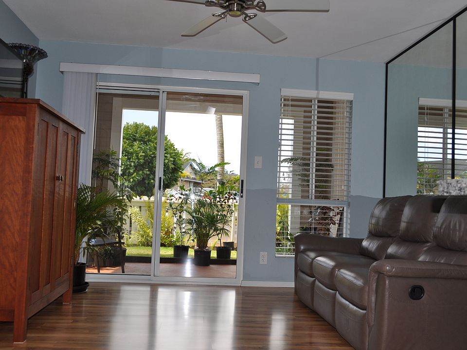 IMMACULATE, MUST SEE 1 bdrm/1 bath condo in Halelani Village. 553 sq ft. Corner/End ground floor condo with large sliding glass door leading to private, fenced, manicured yard with sprinkler system. Beautiful mountain views! Quiet unit away from the road. MF $260 includes water, sewer & garbage.