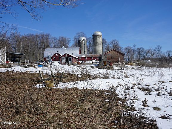 Highly productive former dairy farm, 65 acres of tillable land, 22 acres of pasture. Fertile honeoye soil. Pasture has high tensile fence and frost free hydrants. One half of dairy barn has been used as a run in for beef cattle. Three sided pole barn has water and electric, used for livestock and equipment storage. Large Colonial house with in-law apartment. Very nice setting over looking a pond, ideal for a winery or other business. CRCS School District