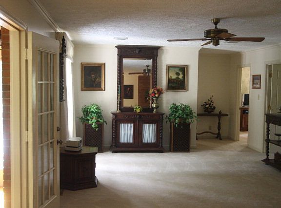 Spacious brick ranch with large rooms in a private setting. Owner owns 50' roadway to house. Neighbor has deeded easement to roadway to access land. Foyer has marble tiled floor. Wonderful sunroom with deck. Whole house vacuum. Well pump installed two years ago. Energy efficient heat pump recently installed has 10 yr transferrable warranty. Compressor has 12 yr transferrable warranty. Large family room in basement has gas logs and is open to second kitchen. Basement kitchen refrigerator and range will not convey. Spring and stream on property. Property line does NOT follow fence line. Owner can point out property lines.