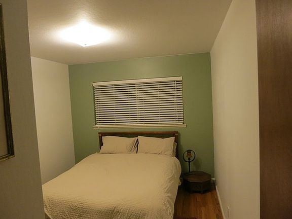 Single story home with washer and dryer. Kitchen with gas stove, refrigerator, dishwasher, and microwave. Wood flooring throughout. Wood burning fireplace. Fenced backyard with deck, fruit trees and raised garden beds. Garage with electric opener. Tenants pay gas and electric