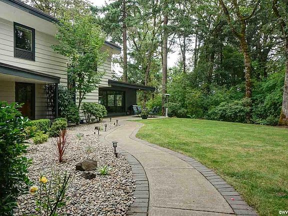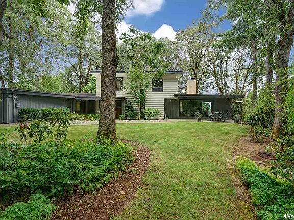 Stunning Frank Lloyd Wright inspired, mid century modern style, custom built home with 1.5 acres has it's own little piece of Heaven among a beautiful oak grove setting. Outstanding features include mahogany lap siding, detailed copper accents on kitchen cabinets, mahogany paneling, oak flooring, 9' beamed ceiling in living rm., extra-large rms. with abundant storage throughout. Floor to ceiling built in book cases. Fully finished basement w/exterior door. Possible dual living. Separate workshop w/concrete floor & power. Garden space, fruit trees, nature trails, and room for RV parking on property.