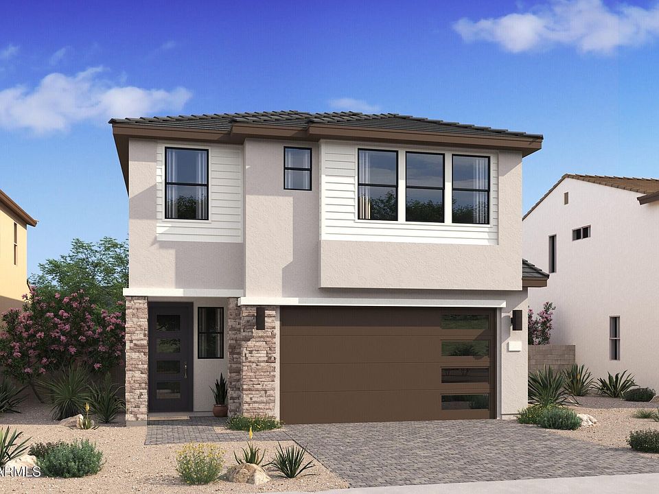 Welcome to Honeysuckle Trail, a picturesque community of stunning new homes in Chandler. This beautifully designed Avalon plan is perfect for entertaining, featuring an expansive great room and a gourmet kitchen with a massive island. The Farmhouse-inspired kitchen boasts white cabinets, striking black quartz countertops, Monogram appliances, and a built-in wall oven. Upstairs, a spacious loft offers the ideal space for relaxation or a home office. The luxurious primary suite serves as a private retreat, complete with a resort-style bath featuring a soaking tub and rain shower. Thoughtful upgrades include wood-look tile in living areas, plush carpet upstairs, matte black hardware, and stylish lighting throughout. Plan your visit today! Up to 3% of Base Price can be applied towards closing cost and/or short-long term interest rate buydowns when choosing our preferred Lender. Additional eligibility and limited time restrictions apply.