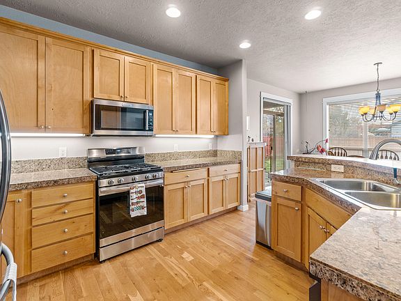 Located in an established NW Redmond neighborhood on a corner lot! This 3 bedroom 2 bath 1728 sq ft single story home w/ covered RV parking & amazing out door space features an open floor plan w/ floor to ceiling windows, gas fireplace, hardwood floors in the kitchen & dining area, all SS appliances, newer range & microwave, under cabinet lighting, granite countertops, breakfast bar, pantry next to the laundry room with a sink, A/C & a 3 car garage (tandem). You'll fall in love w/ the primary bedroom & bathroom w/ coffered ceiling, double vanity, soaking bathtub, enclosed toilet & a large walk-in closet & a covered back patio. Call today & schedule your appointment!
