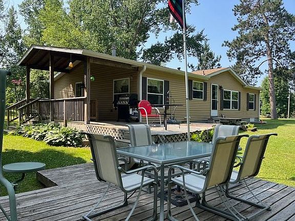 Large 2 1/2 Acre lot with 150 ft of shoreline on Fetchenhier Bay on beautiful Knife Lake only an hour and a half North of the Twin Cities. 3 bedroom/2 bath manufactured home on full basement with wood burning fireplace. The basement is dry and ready to finish with 2 egress windows. The property offers privacy with a nice winding drive and tree cover on both the road and lake side. The yard is spacious with mature trees, double horse shoe pits and even a camping pad with septic and electric hook ups. For boat and toy storage there is a 40x30 pole garage and another smaller metal storage shed by the lake. The fishing on the bay is great and this lot even has it's own private island!