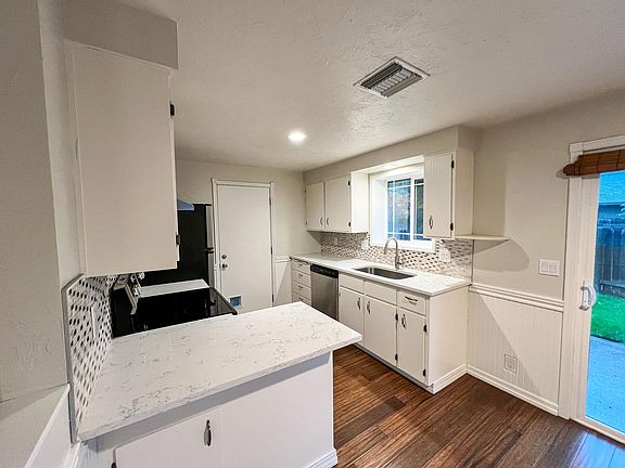 This updated three-bedroom, two-bath home offers modern upgrades and plenty of extras. Inside, you'll find new bamboo flooring, granite countertops, recessed LED lighting, and a smart thermostat for added comfort. An energy-efficient heat pump system provides both heating and cooling, paired with a new high efficiency heat pump water heater. The private fenced backyard is perfect for outdoor living, with an in-ground sprinkler system, large garden space with raised beds, and a storage shed stocked with garden tools. An oversized two-car garage gives you even more storage and workspace. Appliances are included: refrigerator, electric range/oven, and washer & dryer. At the time of move-in, tenants will be required to pay first month's rent, last month's rent, and a security deposit in the amount of one month's rent.