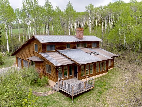 This streamlined, energy efficient designed 2-story cedar sided home has 3 bedrooms, 2 baths, and is 1688 square feet. Built in 1993, it is located in a remote, private, secluded subdivision, completely surrounded by aspen and evergreen trees. The home offers vanEE-air filtering system, a two level brick wall with wood stove that absorbs and radiates heat throughout the home. There are floor-to-ceiling windows along the full length of the south facing side, which bring in plenty of natural light. Hardwood and tile flooring. A recently added sun deck offers additional outdoor living space amongst the trees. This secluded beauty is on 7.15 acres!