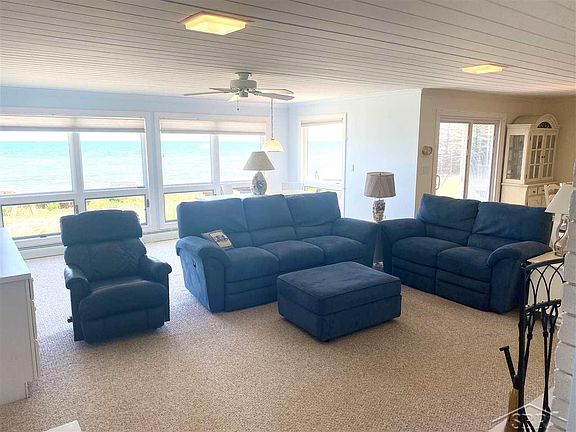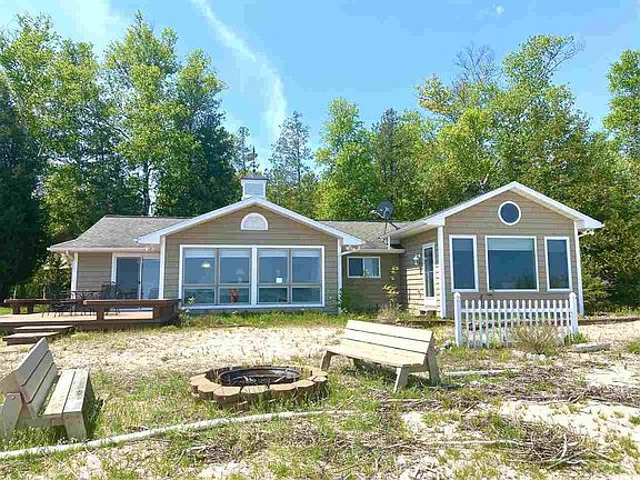 Fantastic views from your Living room, Bedroom or Kitchen as all boast large windows for scenic views of your 200 ft. of beach on Lake Huron. This 3 BR/3 Bath home is open concept, bright and immaculate. Zone Heating and Cooling lets everyone find their own comfort level from Bedroom to Bedroom. On warm summer nights you can sit by waterfront campfire and on cold winter nights you can sit by your wood burning living room fireplace or your gas log bedroom fireplace. The Master Suite is large with a walk-in closet and large bath. If all of that is not enough you also have a 720 sq/ft fully furnished guest house above the 2.5 car garage. 2BR - 1 Bath sitting area and kitchen. And you must see the wooden bridge you cross over your flowing creek when walking out the back door to the second 1 car garage. Generac makes for peace-of-mind. This year round cottage has it all!
