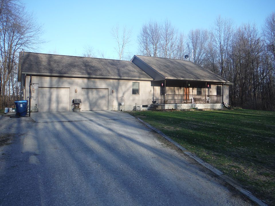 quiet country living with city water, custom built cabinets, oak trim and solid oak doors, master bath has a big whirlpool tub and walk in closet, partially finished basement, attached 28x30 heated garage 12x16 shed
