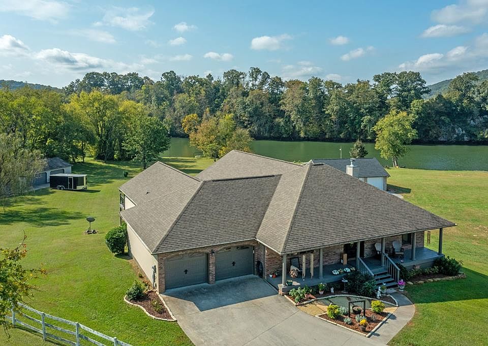 Situated on the banks of the French Broad River, this riverfront basement ranch home features over 4000 square feet of living area, 4 Bedrooms, 4 baths, all hardwood floors on the main level. Relax on the covered deck looking out over the spacious backyard and the tranquil river views. The kitchen features arctic white cabinets, solid surface counter tops, a full compliment of appliances, breakfast bar, breakfast nook and formal dining room. An extra large great room with a wall of windows to enjoy the river views. The master bedroom offers a private entrance to the covered deck and boasts its own sitting room. Plenty of room for the boats and lawn equipment with a 2-car attached garage and a 6-car detached garage/workshop. Easy access to enjoy the water with your own private boat ramp.