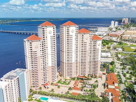 Best-priced condo in the towers at High Point Place! This fully furnished, move-in ready residence in Fort Myers’ premier waterfront community offers outstanding value. Unlike most condos with small balconies, this home features a rare extended riverfront terrace, an outdoor retreat perfect for entertaining, lounging, and embracing the Florida lifestyle. Even better, the terrace connects directly to the resort-style amenities, making everyday living feel like a vacation. Your private elevator opens to a spacious foyer and a beautifully refreshed condo, highlighted by fresh paint and Brazilian teak floors throughout. The split-bedroom layout ensures privacy, with a primary suite boasting stunning river views, terrace access, and a spa-like bath with dual vanities, garden tub, and walk-in shower. The guest suite has city views and shares a balcony with the den. The kitchen is equipped with granite countertops, stainless steel appliances, a double oven, and ample workspace. Impact-rated windows and sliders, along with a separate laundry room with storage, provide peace of mind and functionality. Live, play, and unwind at High Point Place! This pet-friendly community features a heated pool, hot tub, fitness center with saunas, BBQs, and a variety of social events—from happy hours to book club. Climate-controlled storage and secure garage parking complement a location within walking distance to Publix and just minutes from downtown Fort Myers’ dining, shopping, and festivals. Perfect for full-time living or seasonal escapes!