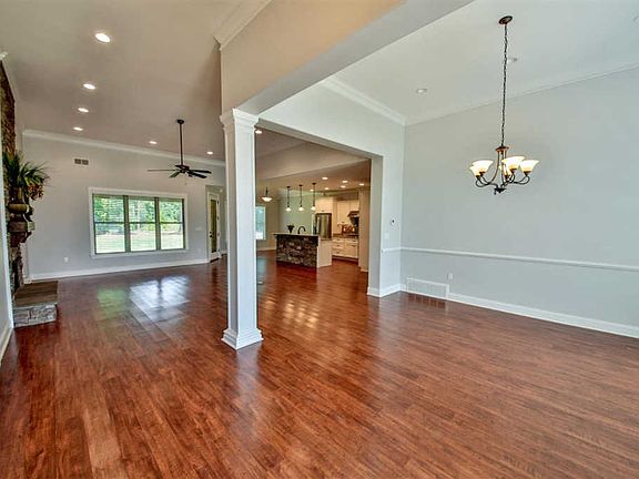 Stunning French Country home on gorgeous property! Over 6 ACRES plus pond w/fountain Open floor plan boasts 4 beds & 3 baths down. Large media/bonus room & full bath up. Luxury master bath w/2 walk in closets. Fabulous fireplace w/floor to ceiling fieldstone! Home features gas cooking, double ovens, microwave. Laundry w/space for fridge. Hallway lockers w/hooks. Rear covered patio leads to a beautiful lot surrounded by woods. LED lighting, 2 tankless water heaters, Rain Bird sprinkler system.
