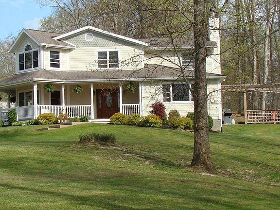 Hocking Hills country home with many updates. Features nice kitchen with granite counters, glass tile backsplash, stainless steel appliances, lots of windows to let in the light and the views, family room with fireplace, living room, 4 bedrooms, beautiful master suite, tree house for the kids, very nice patio for summer entertaining, 3 full baths, wood, tile and carpeted flooring, 36x48 pole barn with insulation and heat with private bath all on 5.41 acres